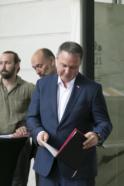 Impulse zur Baukultur aus Sicht der Politik mit Vizekanzler Andreas Babler und Landesrat Daniel Fellner mit anschließender Besichtigung der aktuellen Ausstellung „Der Architektur Wettbewerb - Baukultur und Qualität“.