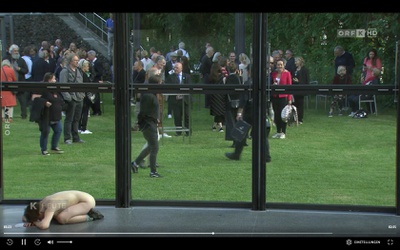 PerformanceDas DOMENIG STEINHAUS wird selbst zum Ausstellungsobjekt und über das Medium Performance, kuratiert von Bettina Kogler, Leiterin des Tanzquartier Wien, auf seine Körperlichkeit hin befragt.