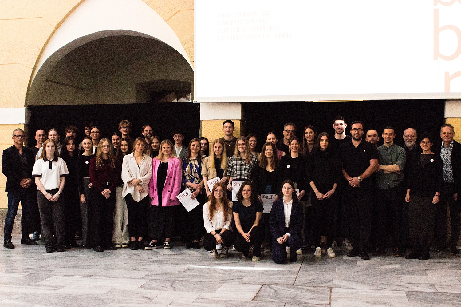Die 15 besten, durch die Jury vorausgewählten, präsentierten dann am 04.04. ihre Arbeiten vor der hochkarätigen Fachjury und den anderen TeilnehmerInnen ihre Beiträge in der Aula des Spittls. Bei einem gemeinsames Abendessen und einer Party im Spittlkeller, von den Studierenden für die SchülerInnen veranstaltet, wurde der Abend gebührend gefeiert. Am folgenden Tag wurden die PreisträgerInnen vor allen TeilnehmerInnen verkündet und die Urkunden feierlich überreicht.