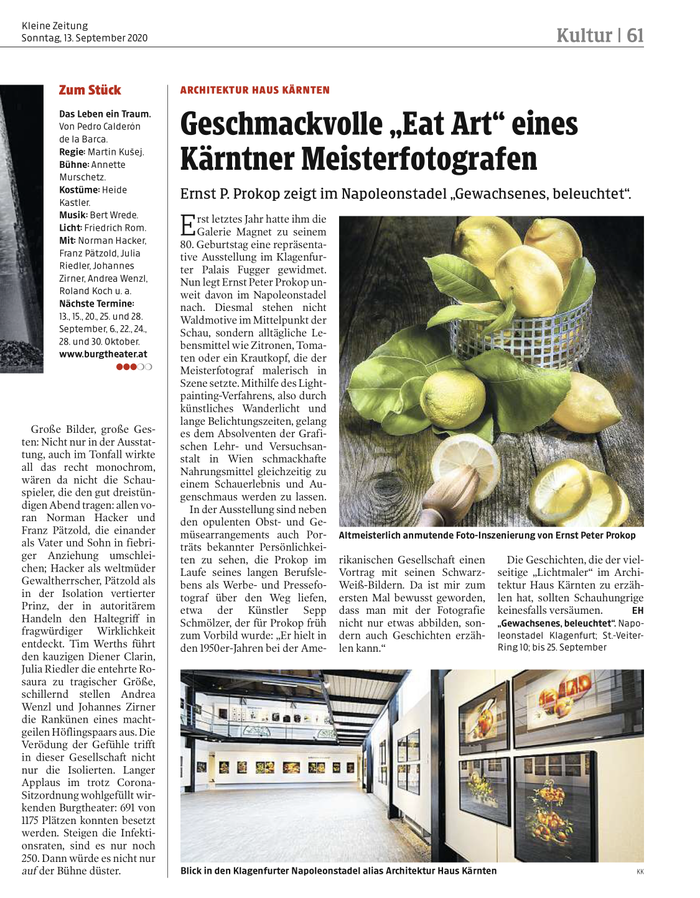 Kleine Zeitung: Geschmackvolle "Eat Art" eines Kärntner Meisterfotografen