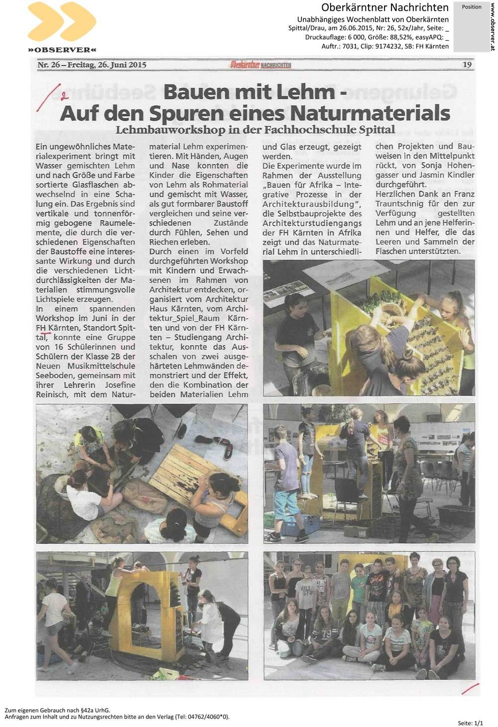 Oberkärntner Nachrichten_2015.06.26_Bauen mit Lehm