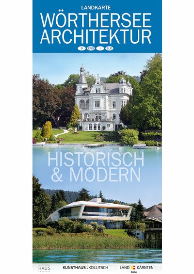 Karte mit 54 historischen und modernen Villen/Bauten um den Wörthersee. Im ArchitekturHaus Kärnten gratis erhältlich.