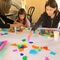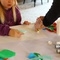 Wir suchen Farbflecke und Striche. Wir zeichnen, kleben, reißen Papier und machen Druckspuren.