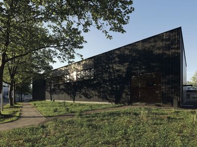 Der Schlauchturm wurde ins Bauwerk integriert und ist erst auf den zweiten Blick durch die Vertikal-Lamellen an der Fassade erkennbar. Nichts dominiert, alles ist eins, das ist durchaus eine der konzeptionellen Stärken des Entwurfs.