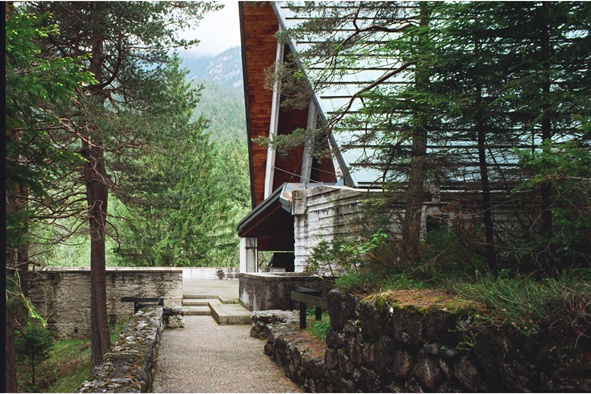 Ein besonderer Höhepunkt dieser Feriensiedlung ist die Kirche, die Edoardo Gellner zusammen mit Carlo Scarpa geplant hat. Das Bauen für den Tourismus wurde im Fall dieser Siedlung, die ursprünglich auf einem Schuttkegel geplant und gebaut wurde und heute mitten im Wald liegt, zur „Rekonstruktion einer Landschaft“ (Friedrich Achleitner).