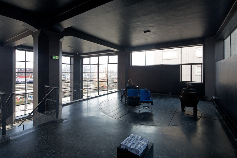 Zentrales Moment des gemeinsam entwickelten Konzepts der Ausstellung „Film Foto Foto Film“ ist die vollständige Transformation der Räume des aut – Böden, Decken und Wände – von Weiß in Schwarz, wodurch einerseits die räumliche Wahrnehmung radikal verändert und andererseits die Beziehung zwischen Innen und Außen verschoben wird. Die Ausstellungsräume als weitgehend dimensionslose Etuis werden zu einer betretbaren Black Box und der Blick auf die Umgebung wie auf die Wahrnehmung des Lichts fokussiert – jenes zentrale Moment der Medien Fotografie und Film; zumal während der Ausstellungsdauer im aut kein künstliches Licht eingesetzt wird.