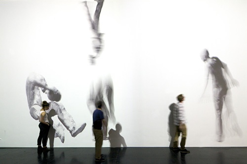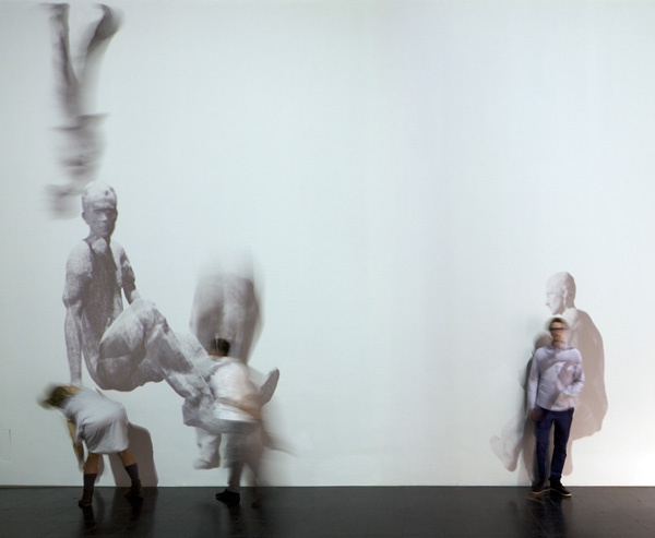 Die Installation verschiebt die Wahrnehmung von Gebäuden und konzentriert sich auf jene, die darin wohnen. Unter dem Titel "Hands have no tears to flow ..." sind keine Gebäude zu sehen, sondern Figuren, genauer digitale Figuren oder digital animierte Körperoberflächen.