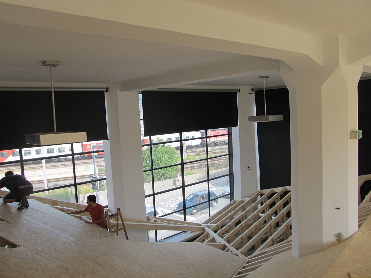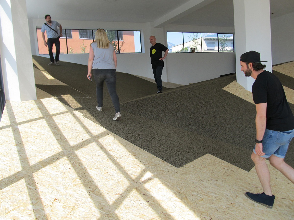 Als zentrales Element wird eine "soziale Landschaft" gebaut, auf der man liegen, sitzen und gehen kann, die zu einer neuen Art der Raumwahrnehmung animieren will oder zum Picknicken einlädt.