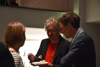 Diese ungezwungenen Abende werden lukullisch von Mitgliedern oder Freunden des aut gestaltet, in diesem Jahr wieder vom bewährten Team Renate Benedikter-Fuchs, Erich Wucherer und Mario Ramoni, die mit dem zur 1970er-Jahr-Ausstellung passenden Buffet „Schinkenröllchen und mehr“ für Gaumenfreuden gesorgt haben..