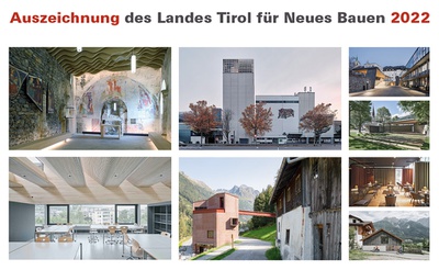 Bei der "Auszeichnung des Landes Tirol für Neues Bauen 2022" hat die Jury 4 Auszeichnungen (Revitalisierung Burg Heinfels, Transformation Gutmann Pelletsspeicher, Aufstockung HTL Bau und Design, Tiroler Steinbockzentrum), 4 Anerkennungspreise und eine lobende Erwähnung vergeben.