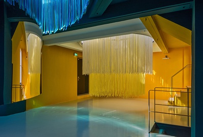 Eröffnung einer raumgreifende Installation des spanischen Architekturbüros, das sich mit farbenfrohen Bauten aus industriellen Materialien einen Namen gemacht hat.