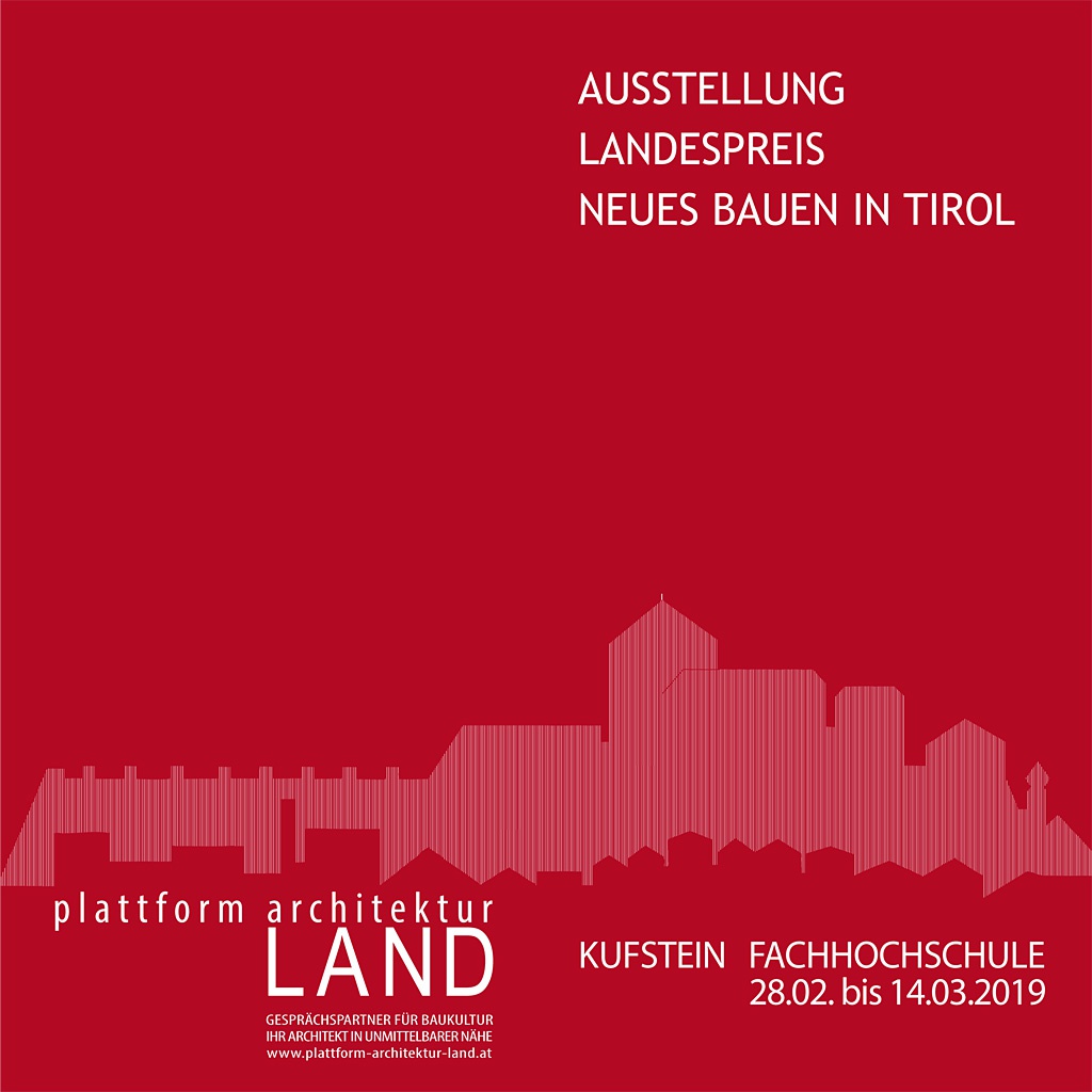 Diese Ausstellung geht in diesem Jahr – mit Unterstützung der Kammer der ZiviltechnikerInnen | Arch+Ing Tirol und Vorarlberg, Sektion ArchitektInnen und des aut – erstmals auf Wanderschaft quer durch Tirol, damit sich die interessierte Öffentlichkeit nicht nur in der Landeshauptstadt einen Überblick über das aktuelle Architekturgeschehen in Tirol verschaffen kann. Nach Lienz macht die Ausstellung nun Halt im Tiroler Unterland, und zwar in der Fachhochschule Kufstein. Treibende Kraft war genauso wie in Osttirol ein neu gegründeter Zusammenschluss von ArchitektInnen, die plattform architektur LAND.