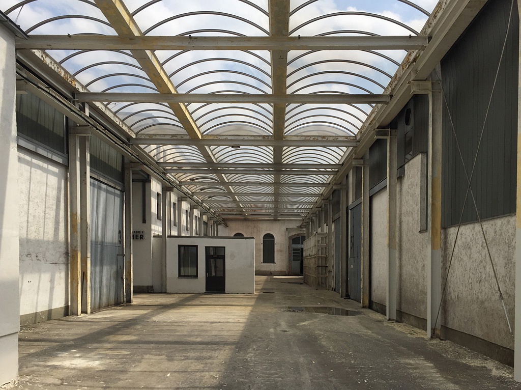 Durch die Firstverglasung fällt von weit oben fahles Licht auf die rußgeschwärzten Mauern und Stahlträger der rund 150 Jahre alten Gießerei, vereinzelt stehen noch Arbeitsgeräte herum, sonst ist die rund 350 Quadratmeter große Halle leer. An der Ostseite des Gebäudes kragt eine Plattform in Richtung Sill aus, westseitig setzt sich das insgesamt 6.000 Quadratmeter große Firmenareal fort, es gibt darauf insgesamt zehn Werkhallen, dazwischen glasüberdachte Verbindungswege.