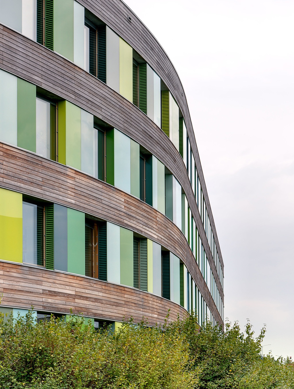 Bei ihren Farb-Setzungen geht es immer auch um eine eigensinnige Kommentierung der haptischen wie optischen Oberflächen der Stadtquartiere in denen Sauerbruch Hutton bauen. Etwa beim Büroturm „Sthlm 01“ in Stockholm, bei dem sich die roten Fassadenfelder als in die Vertikale gesetzter Verweis auf die schwedenroten Holzhäuser verstehen lassen. Oder bei den horizontalen, glänzend grünen und gelben Brüstungsbändern in Helsinkis neuem Quartier Airut, die an die Farben des einstigen Container-Hafens erinnern. Oder bei der vielfarbig zersprengten, unterschiedlichste Einflüsse reflektierenden Farbgestaltung des Pariser Quartiers ZAC Claude Bernard dort, wo die Innenstadt auf die Gemeinde Aubervilliers mit ihren über 40 verschiedenen Nationalitäten trifft.