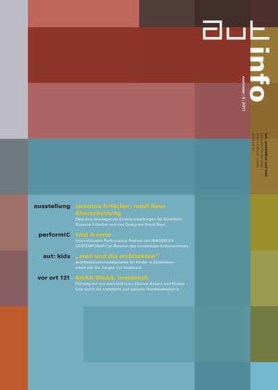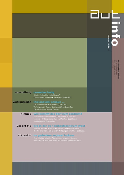 Die Ausgabe 3/11 der Programmzeitschrift aut: info mit Hintergrundinformationen zur Ausstellung "Überschattung" und zum Programm des aut zwischen Juli und Oktober 2011.