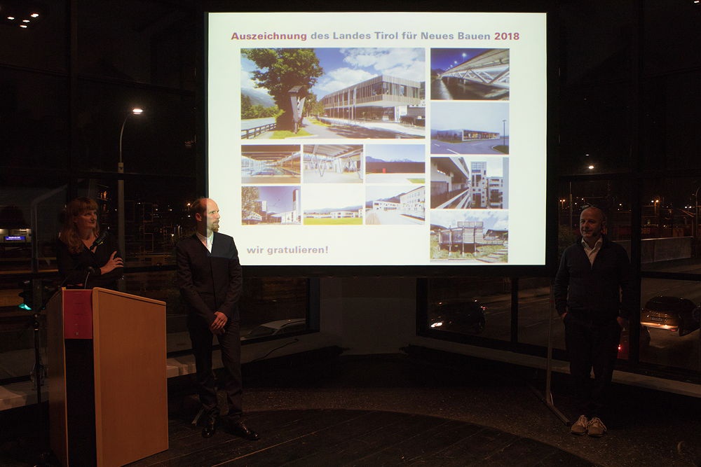 Am Donnerstag, 18. Oktober 2018, hat im aut die feierliche Preisverleihung der "Auszeichnung des Landes Tirol für Neues Bauen 2018" mit Landesrätin Beate Palfrader und den Jury-Mitgliedern Carmen Wiederin und Hannes Mayer stattgefunden.