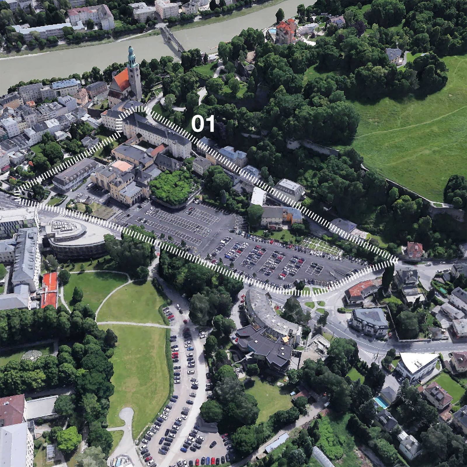 Key Words: Expansion of the historic town center / Kepp on building / Access to the mönchsberg mountain