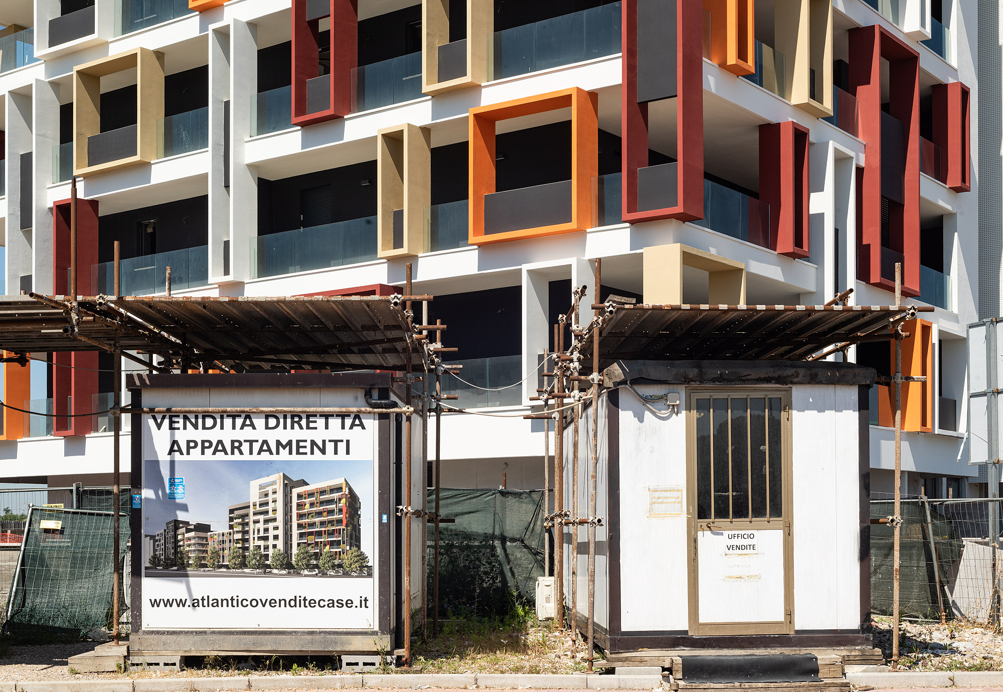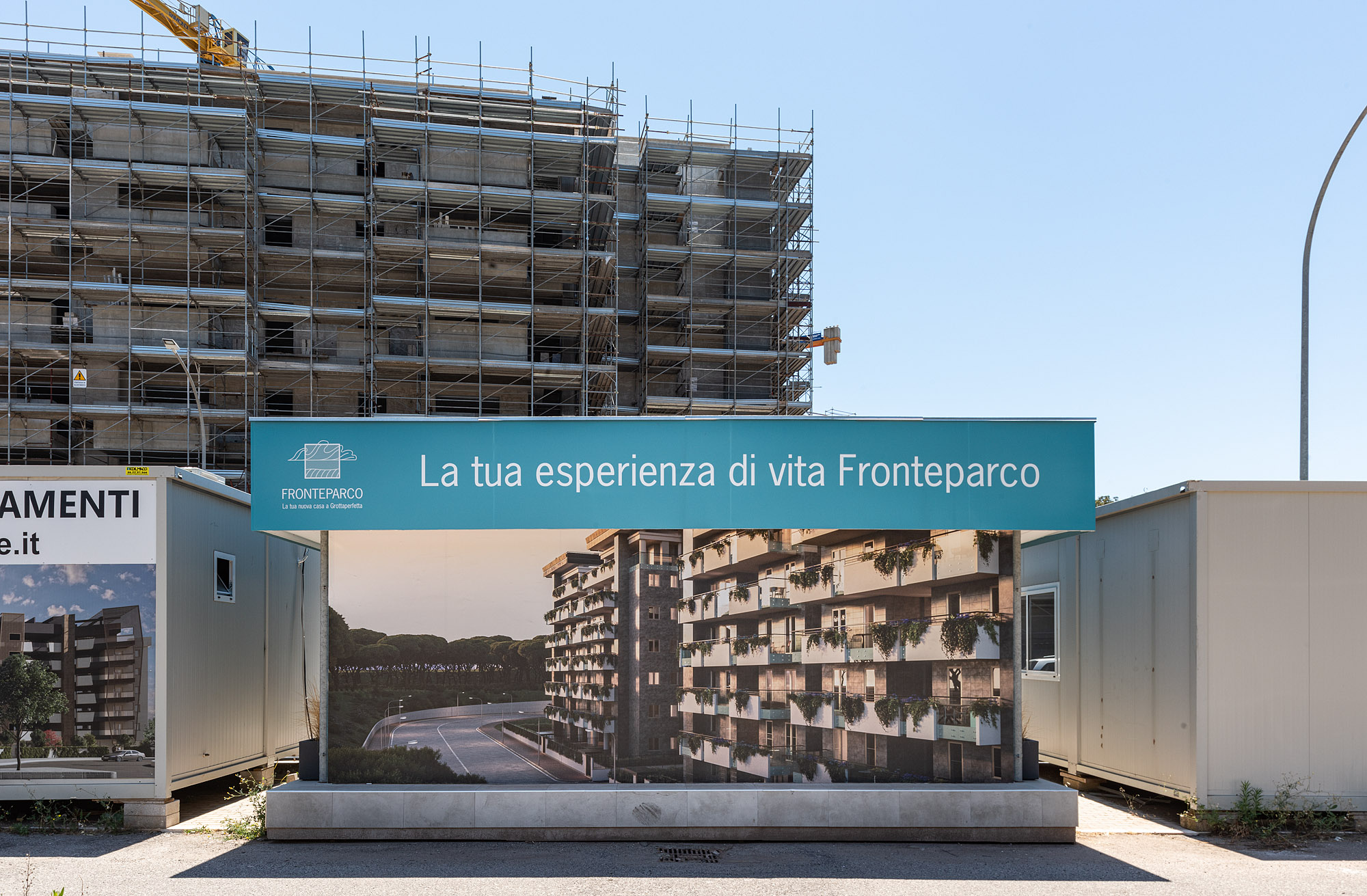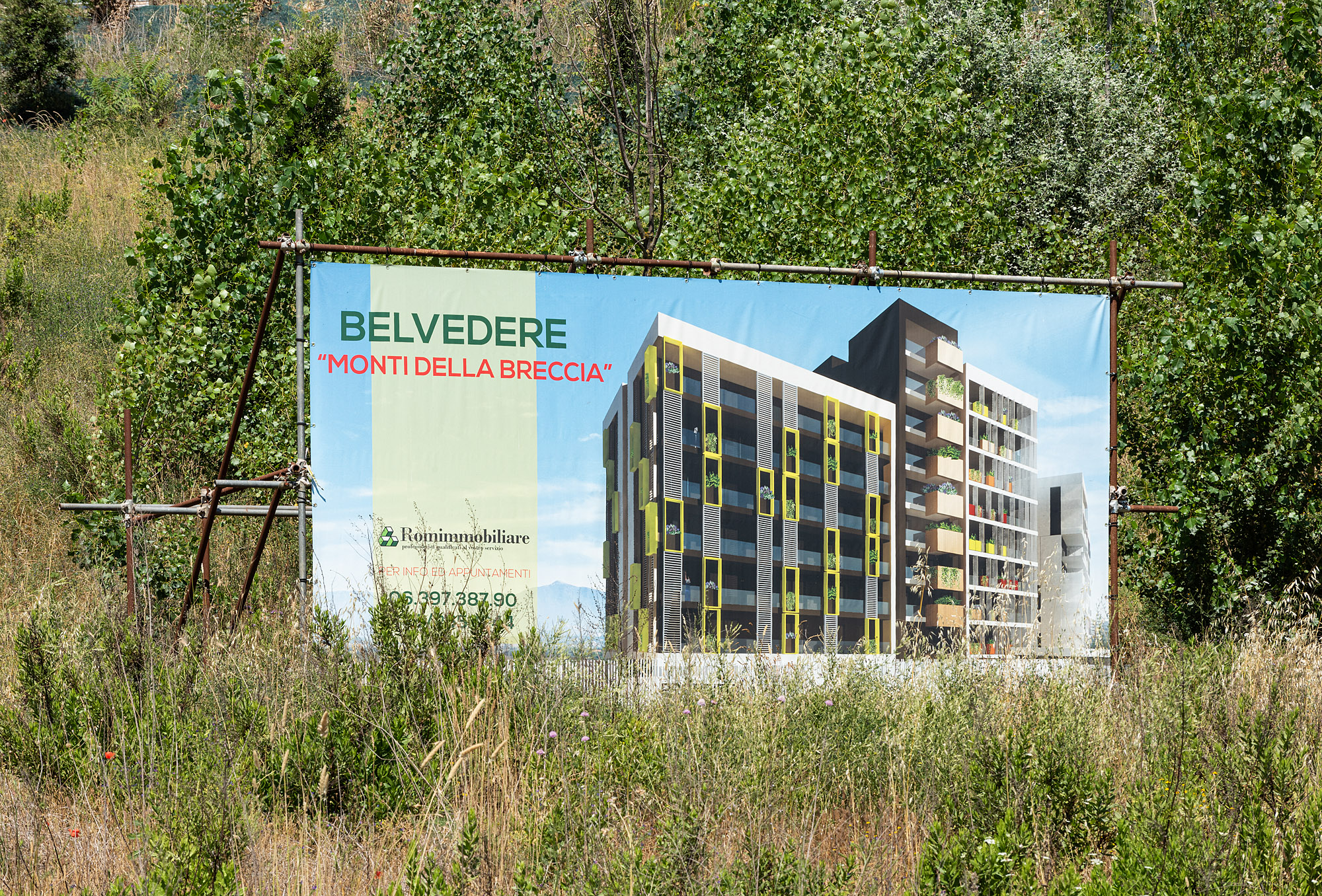 ERÖFFNUNG: 21.09.2022, 20 UHR || Die bildliche Darstellung von Bauten und städtischen Räumen gehört zu den wichtigsten Formen in der Kommunikation von zeitgenössischer Architektur. Im Stadtraum werden diese Visualisierungen oft zu Werbezwecken an Baugerüsten und Bauzäunen verwendet. Die Ausstellung "Verhüllung und Verheißung" geht dem Phänomen der Immobilienwerbung im öffentlichen Raum nach. Aufnahmen des Fotografen Hans Georg Esch von Plakaten aus verschiedenen Teilen der Welt werden Texten von Reinier de Graaf, AMO/OMA, Bildanalysen der Grafikdesignerin Rosa Nussbaum sowie einer Installation des Künstlers Sven Borger gegenübergestellt.