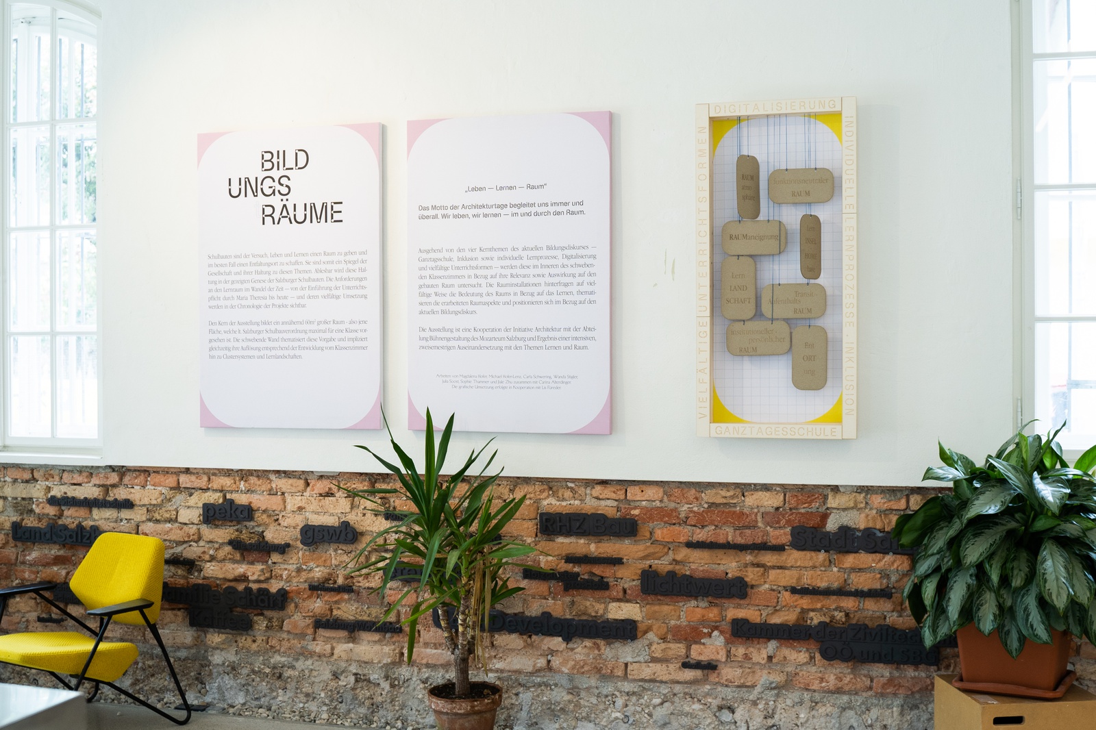 Im Zentrum der Ausstellung steht eine Reflexion über die Wechselwirkung von Lernen und Raum, künstlerische Interpretationen möchten hierfür Impulse setzen und zum Nachdenken anregen. Studierende des Departements für Bühnengestaltung haben gemeinsam mit Carina Alterdinger den aktuellen Bildungsdiskurs inhaltlich reflektiert, die Ausstellung konzipiert und handwerklich umgesetzt.