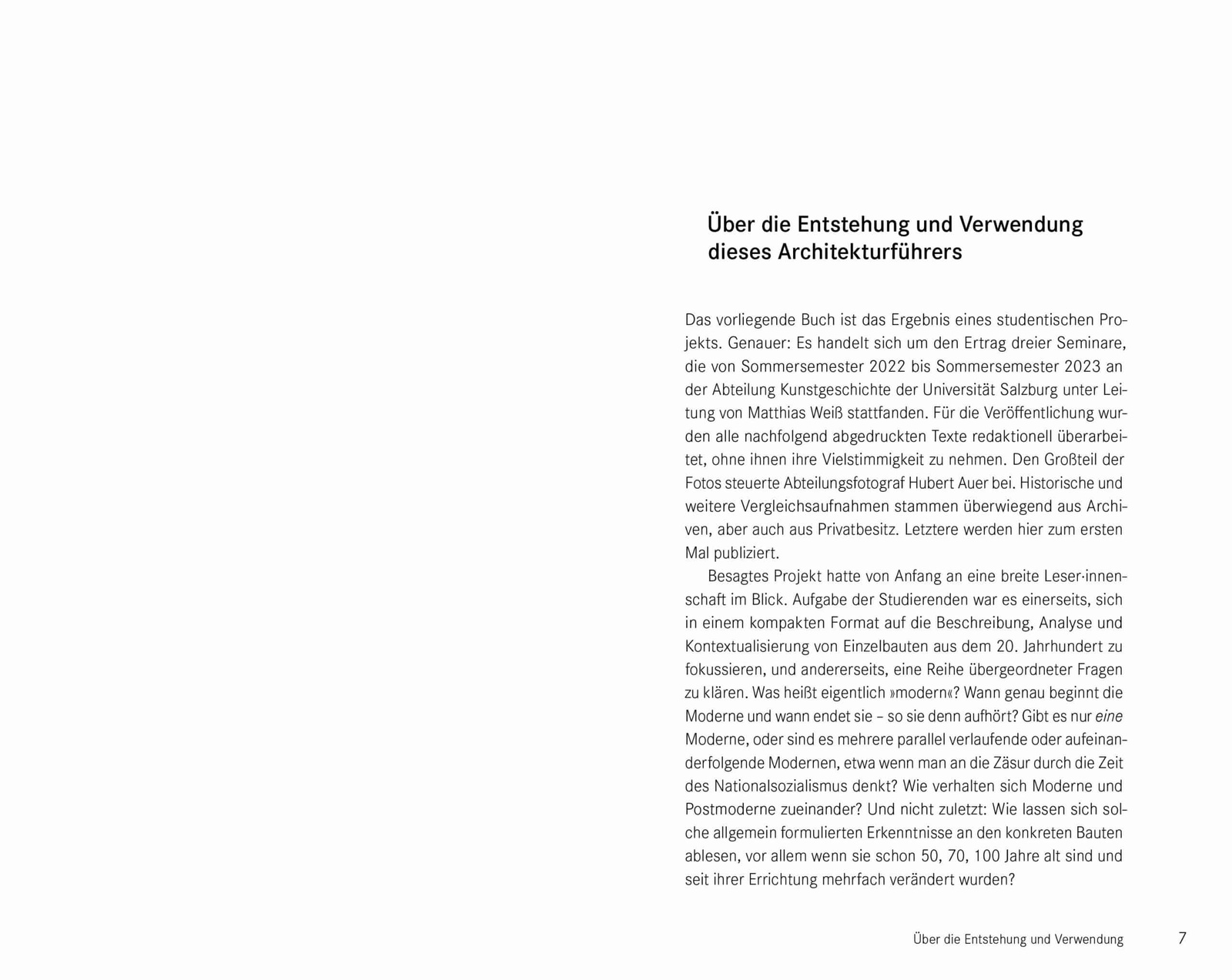 BUCHPRÄSENTATIONGemeinsam mit Fotograf Hubert Auer sowie den beiden Studentinnen Victoria Knapp und Corina Laßhofer gestaltet Kunsthistoriker und Herausgeber Matthias Weiß die Präsentation des Buches. Dabei wird das Werk aus unterschiedlichen Perspektiven vorgestellt.