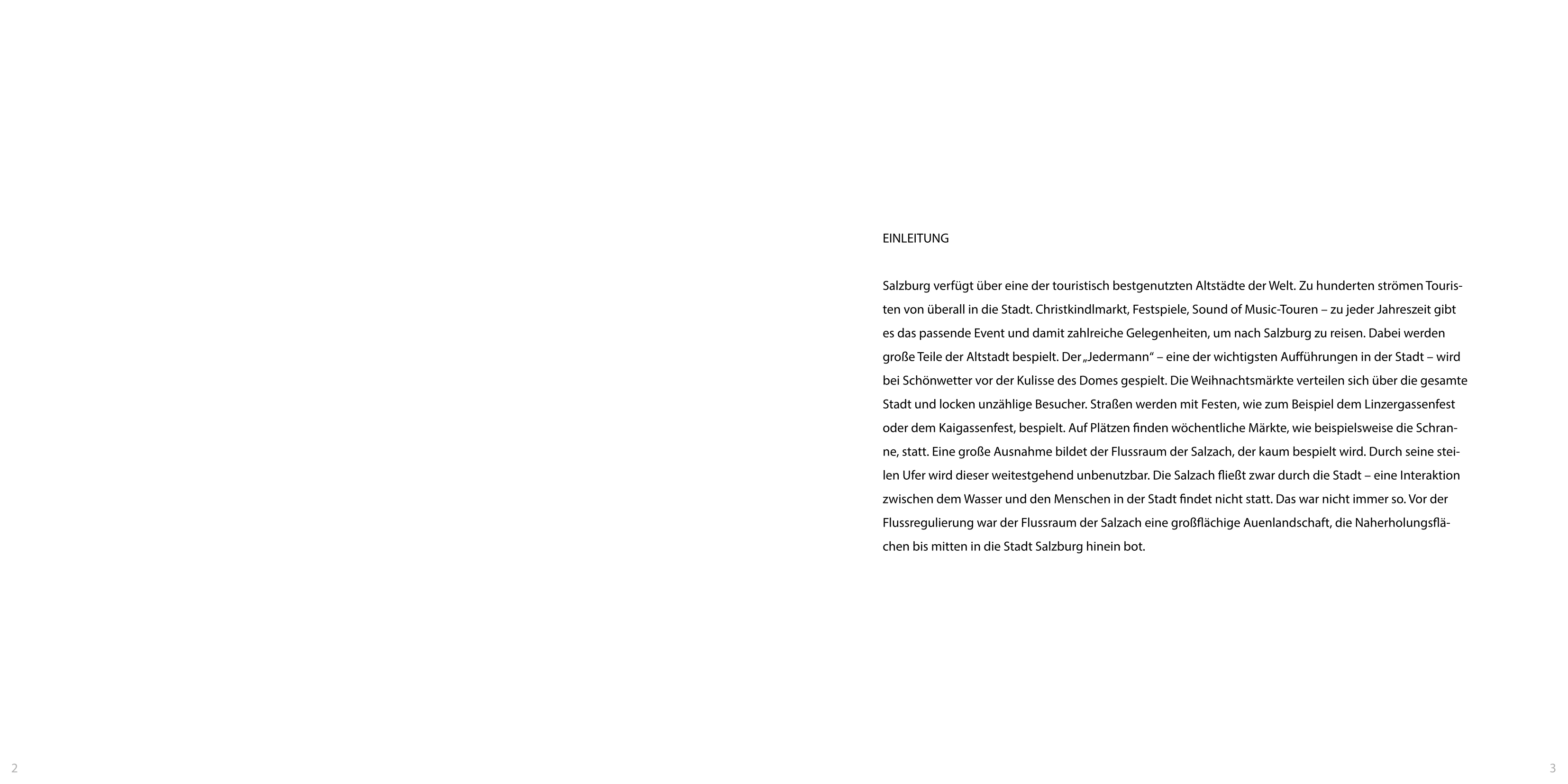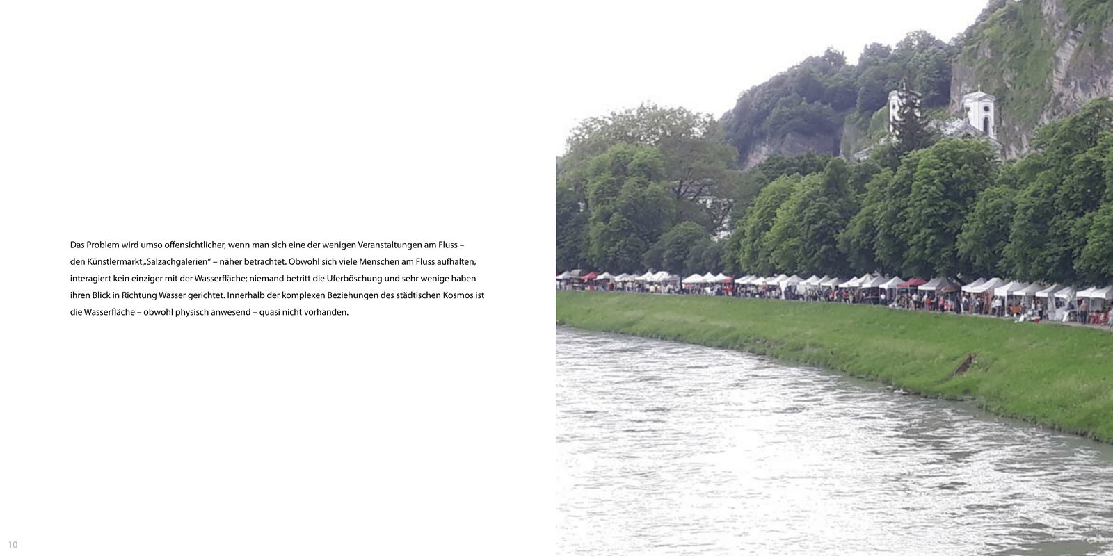 AusstellungDer Flussraum der Salzach birgt neben bestehenden Qualitäten, hohes Potenzial für städtebauliche Optimierungen. Horst Lechner und Lukas Ployer thematisieren in ihrer gemeinsamen an der Kunstuniversität Linz entstandenen Masterthesis, wie Methoden und Strategien zur Umwandlung des Flussraumes in eine pulsierende Lebensader aussehen könnten.